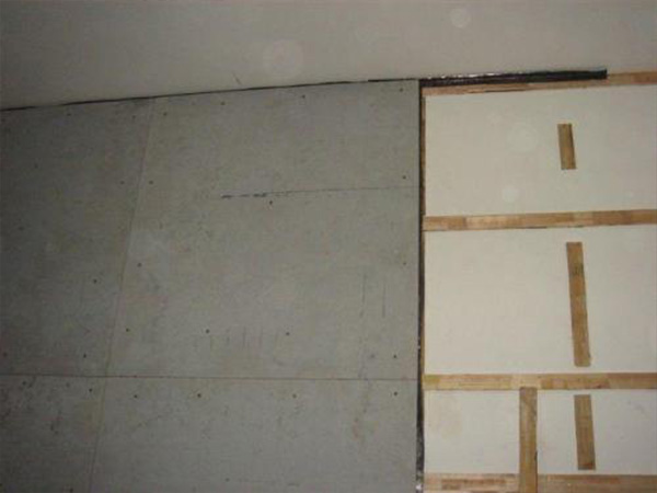 3;将硫酸钡板切割成合理的尺寸,平铺在龙骨架上,然后切割10里米宽板条铺在钡板的接缝处,避免缝隙漏线。